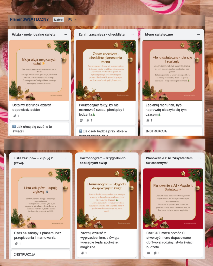 Kompletny gotowy szablon planowania świąt krok po kroku w bezpłatnej aplikacji organizacyjnej Trello