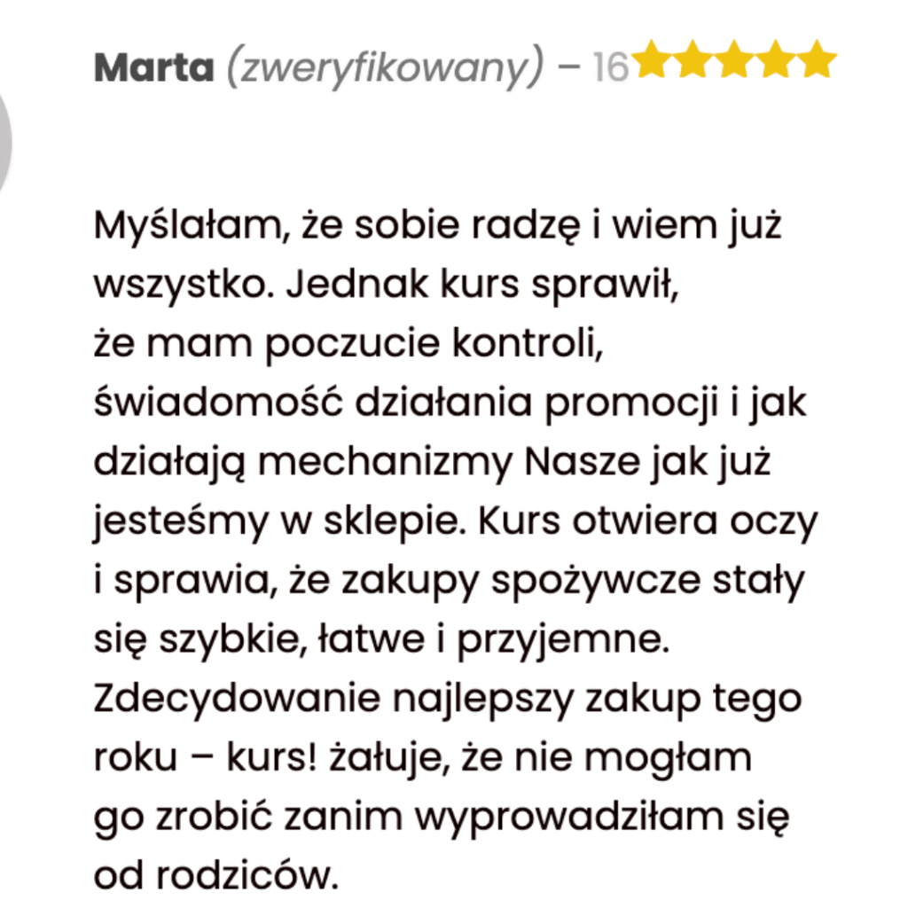 ✔️ Pracujesz, zarabiasz, ale mimo wszystko nadal czujesz, że wydatki na jedzenie coraz bardziej Cię obciążają, nie chcesz rezygnować z jakości, ani zaciskać pasa – szukasz systemu, który da lepsza kontrolę, ale bez wyrzeczeń.